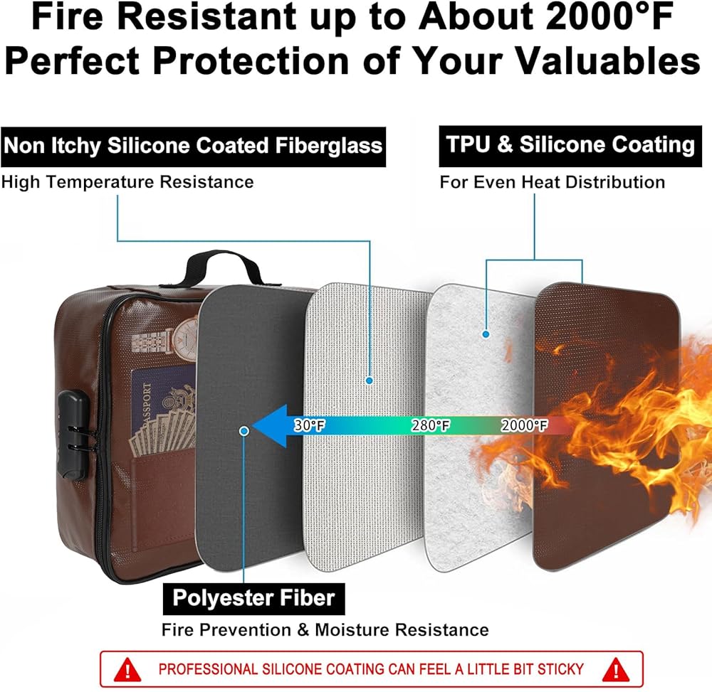 ✅𝐑𝐄𝐀𝐋 𝐅𝐈𝐑𝐄𝐏𝐑𝐎𝐎𝐅 & 𝐒𝐎𝐅𝐓 𝐌𝐀𝐓𝐄𝐑𝐈𝐀𝐋: Our fireproof document bag is made of non-itchy silicone coated fiberglass material(professional silicone coating can feel a little bit sticky), 𝐬𝐦𝐨𝐨𝐭𝐡 and 𝐬𝐨𝐟𝐭, that provides genuine fireproof protection for your important documents. It can withstand temperatures up to 2000℉, giving you peace of mind in case of a fire.The soft material provides a more flexible storage space.