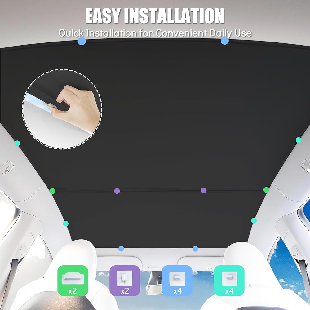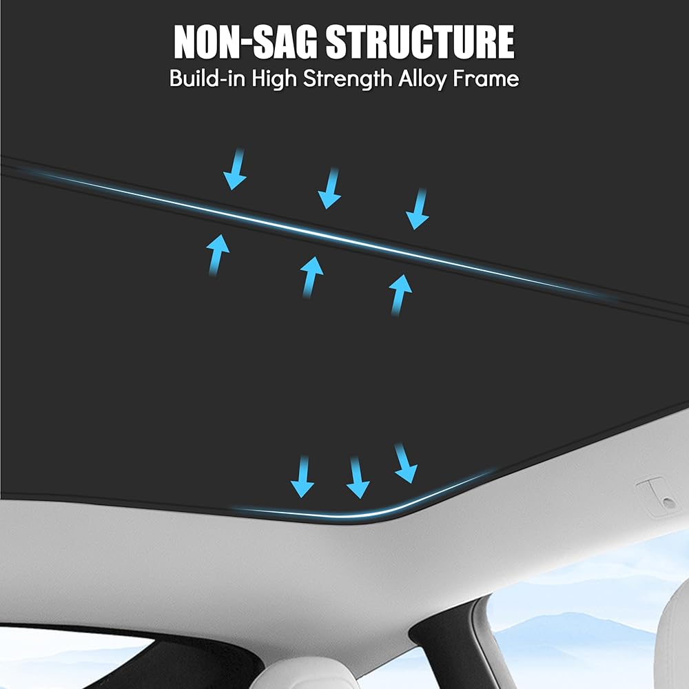 Sunshade Roof for Tesla Model Y 2024-2020 [Superior Anti-UV & Sag-Free] Glass Roof Sunshade with Storage Bag,Heat Insulation Sunroof Shade for Tesla Model Y Accessories