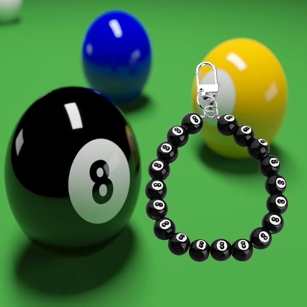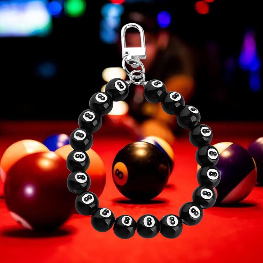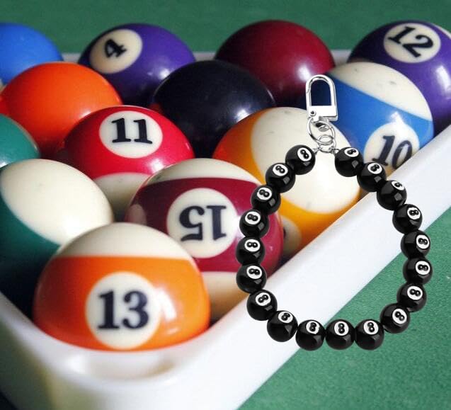 POTIY Billiards Ball Bracelet Pool Player Gift Pool Ball Lucky 8 Ball Charm Keychain Gift for Billiards Lover