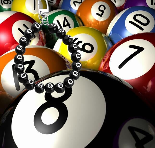 - Includes a 3D pool table black 8 ball bracelet or keyring, great gift for pool player.