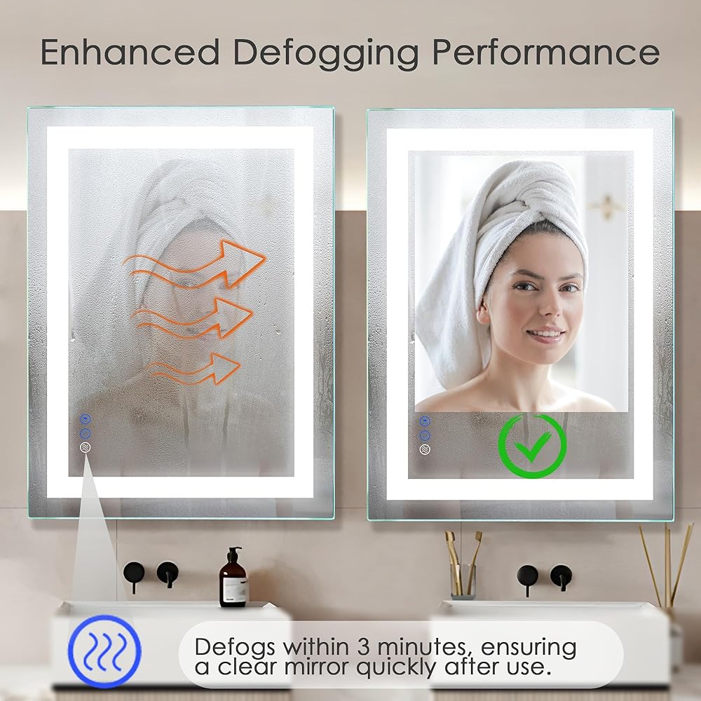 Anti-Fog Technology - Experience a fog-free mirror with our DR.LUX Smart bathroom mirror. Boasting a larger defogging area, it efficiently clears up in 3-5 minutes. Activate the defogging function beforehand, and revel in a crystal-clear reflection even after a steamy shower. Elevate your daily routine with this comfortable and practical feature.