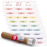 Quarterhouse 9 Spanish Cursive Alphabet Chart (Colorful) Set, Elementary Classroom Learning Materials for Pre-K and K-12 Students and Teachers, 18 x 6 Inches, Made in USA