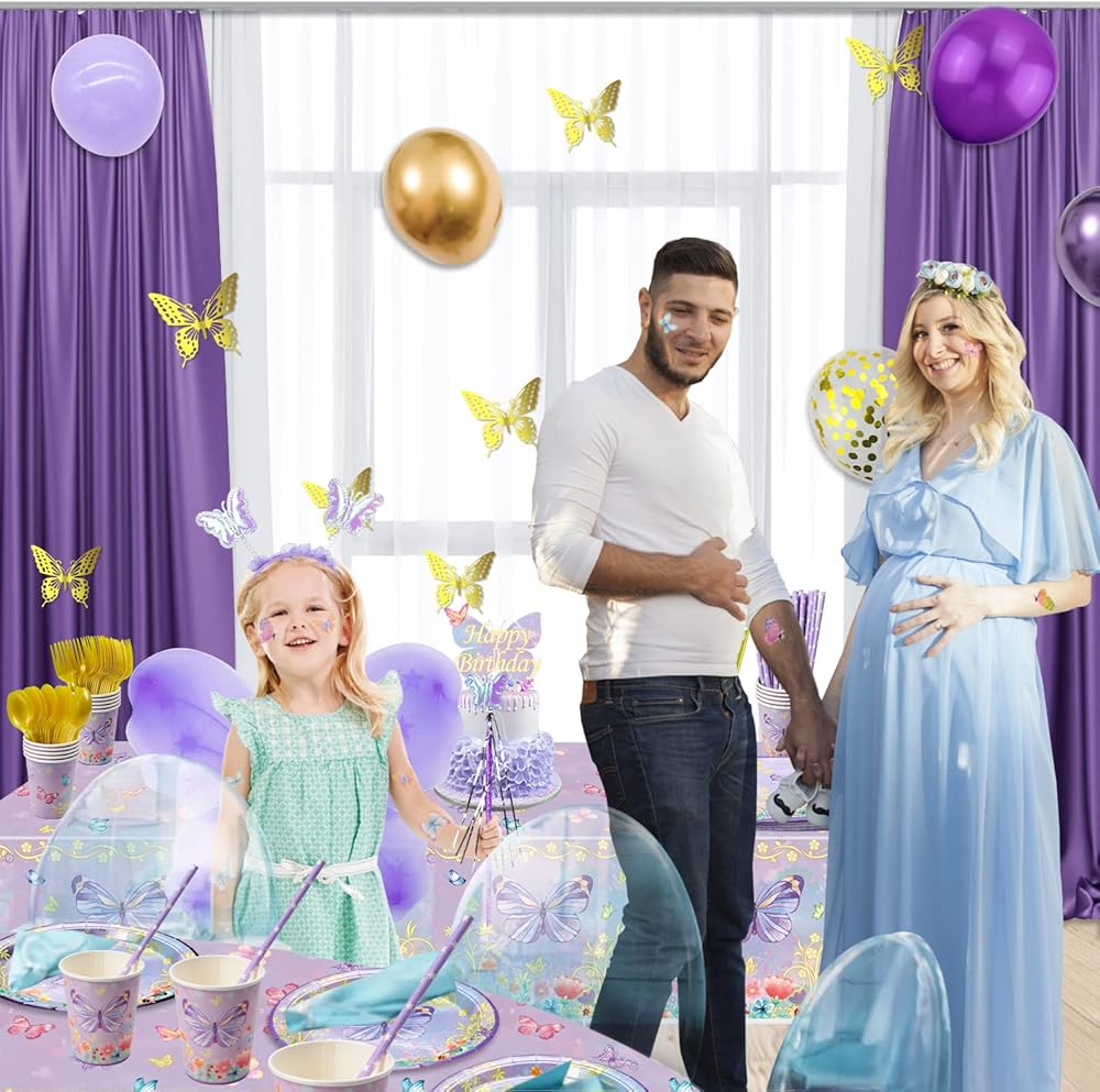 Widely Use - Butterfly party supplies are ideal decorative items for spring/summer birthday parties, baby showers, girl birthday parties, gender reveal parties, adult rites, weddings, photo booths, princess parties, family gatherings, garden tea parties, picnics, and family gatherings.