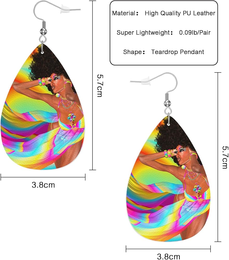 African Woman Earrings, Abstract Explosion Head Rainbow Skirt Lightweight Leather Dangle Teardrop Jewelry for Ladies Friends