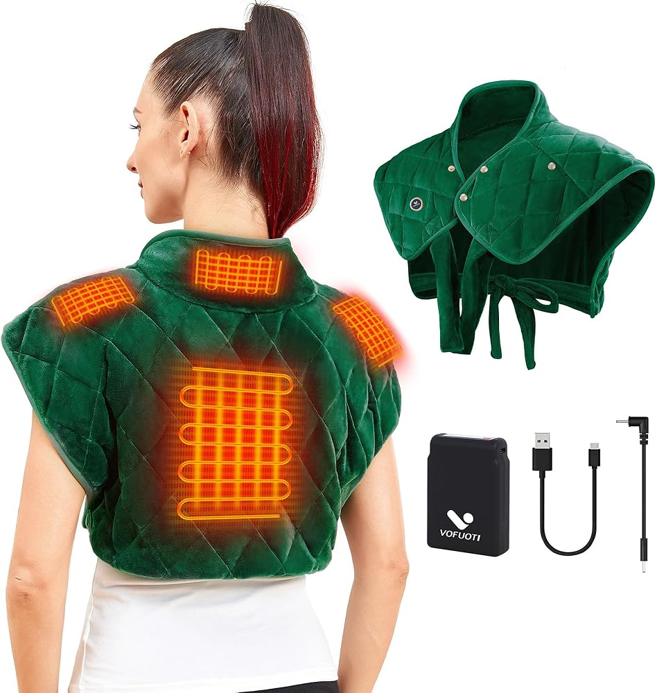 Vofuoti Portable Heating Pad for Neck and Shoulders, Cordless Heating Pad with Battery and 3 Heat Settings, Weighted Electric Heated Neck Shoulder Wrap, 16'' x 22'', 2.2lbs