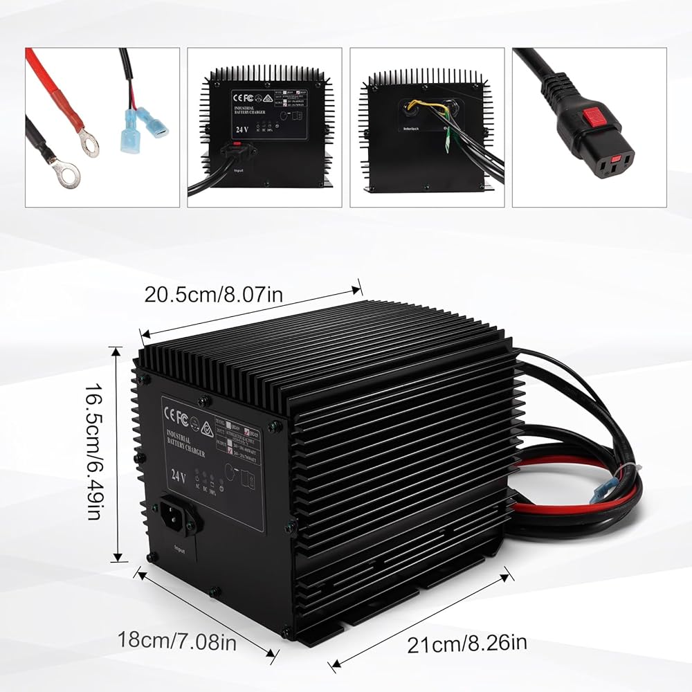 【*Note*】Please check the Voltage&Amperage of the battery is 24V 19A before your purchasing, choose the appropriate charger according to the specifications. If you need to purchase a 24V 25A battery charger, you can search for "B0CYWN4JFR".