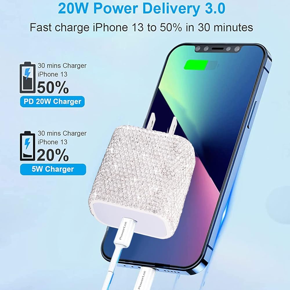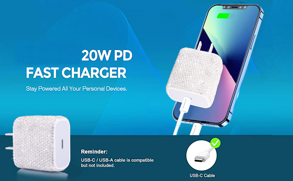 USB C Charger Fast Charger Block PD 20W Type C Wall Charger Bling Decors Compatible for iPhone 13/13 Mini/13 Pro/13 Pro Max/12 Pro Max/SE/11, Pixel, Galaxy S20 S10 S9