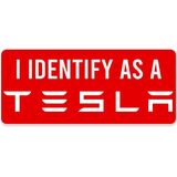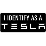 I Identify as a Tesla Bumper Sticker (Funny Automotive auto Decal for Cars, Trucks, RVs (Black 3 x 7 inch)