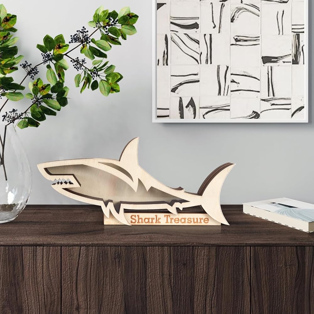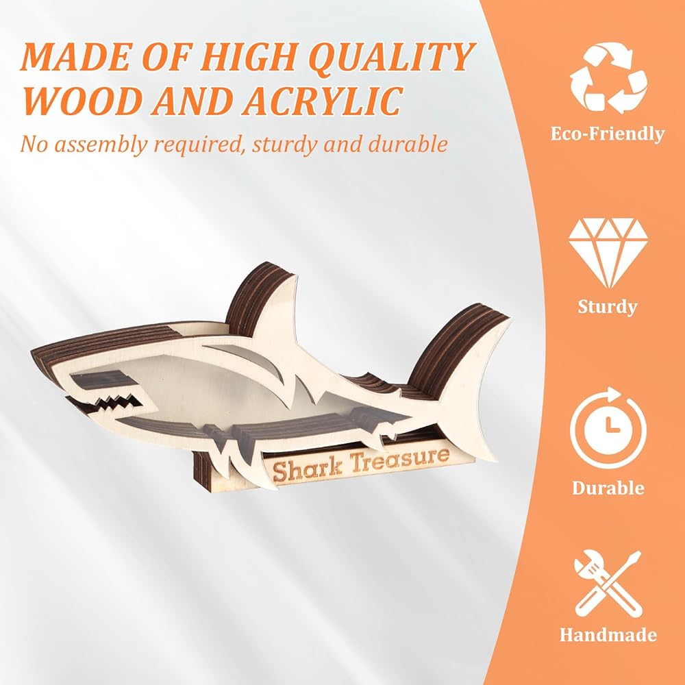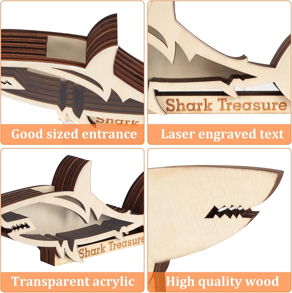【Special Design】This wooden shadow box adopts a beautiful shark shape. And the transparent acrylic surface allows you to clearly see the shark teeth inside. This is a meaningful storage box.