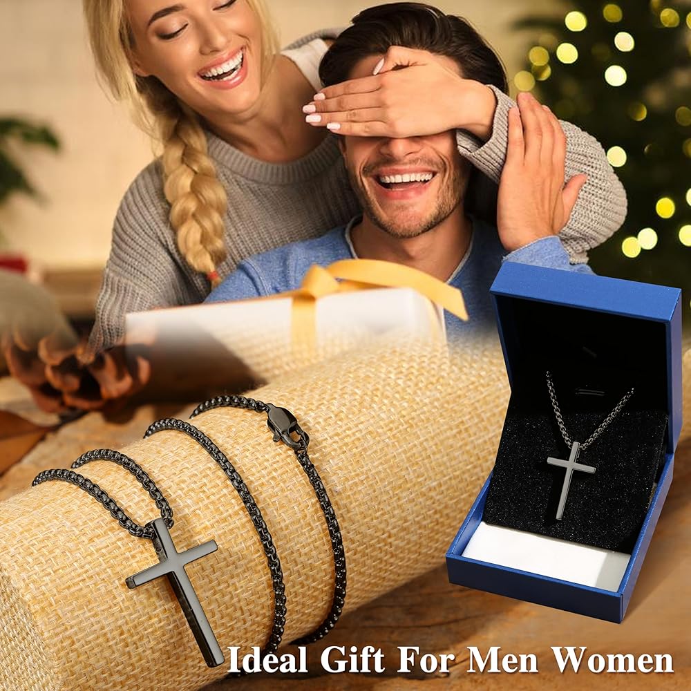 💝 Appropriate Size 💝 cross pendant length: 1.3 in(32mm), width: 0.8 in(20mm),4mm in thickness. Choose from cross necklace chain length of 18,20,22 inches,each 2.5mm width.You can choose the size you usually wear or compare the size guide to select the mens chains size you need.