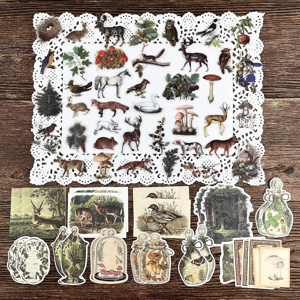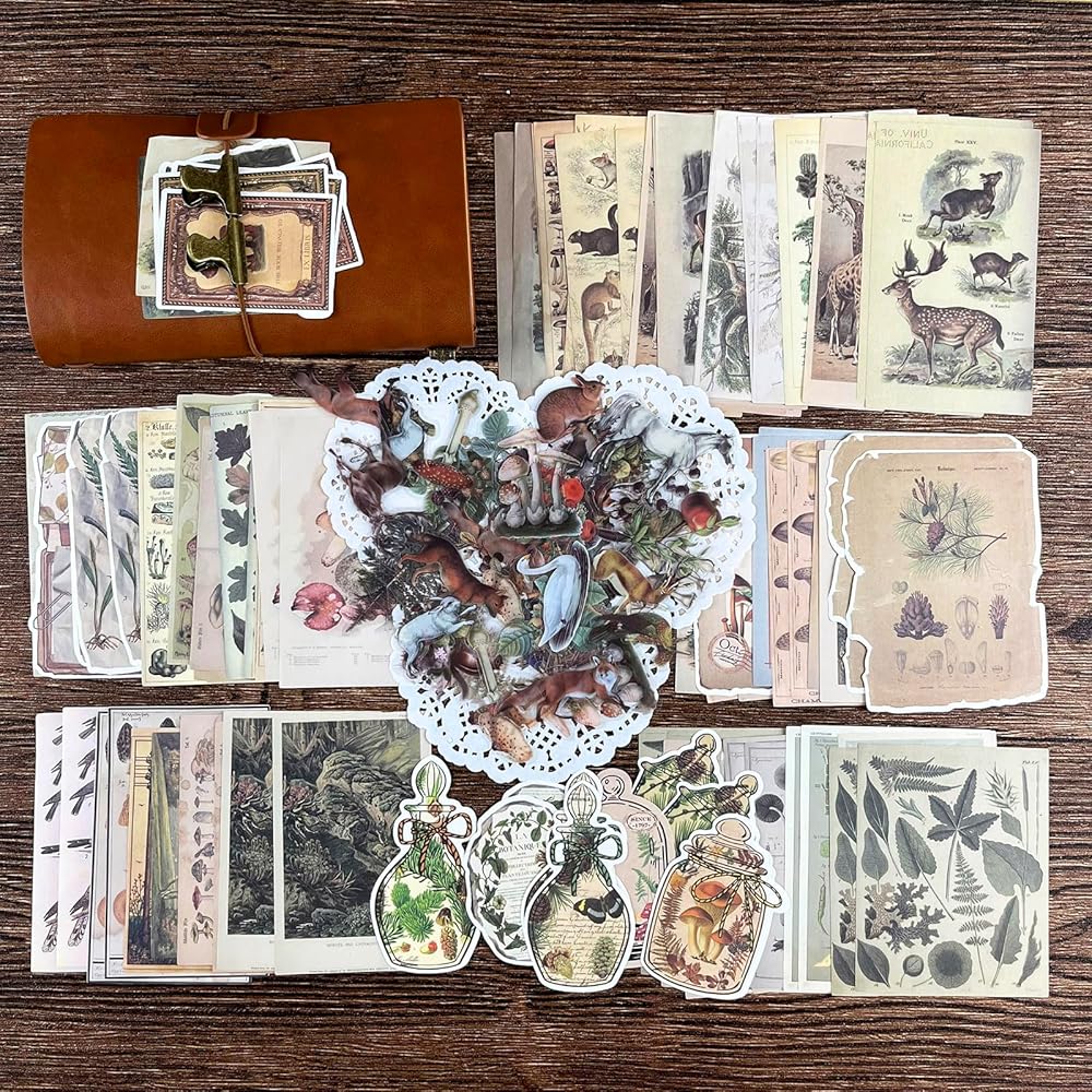 200pcs Vintage Scrapbook Paper Sticker Journaling Scrapbooking Supplies Kit Aesthetic Decorative Craft Paper for Art Junk Journals Planners(Wild Nature)
