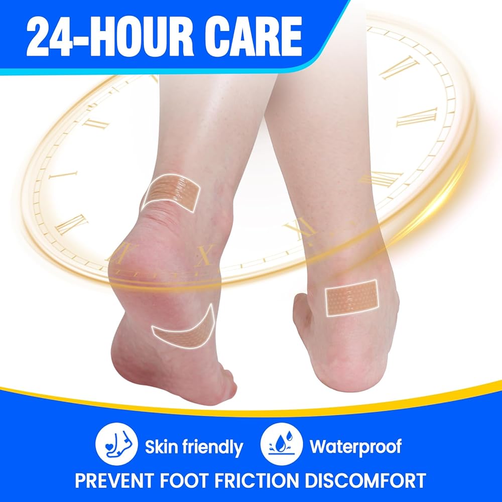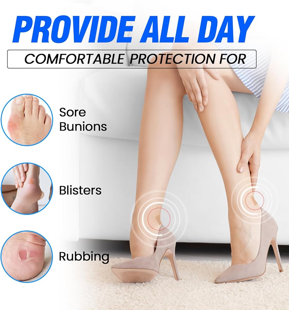 • ✅【INSTANT PROTECTION】The blister bandages help cushion and protect the skin from friction and pressure, preventing scratches and bruises, blisters and chafing, and relieving pain, perfect for women when wearing high heels, boots, flats and trainers. The blister pad is the perfect companion whether you are outdoors or indoors!