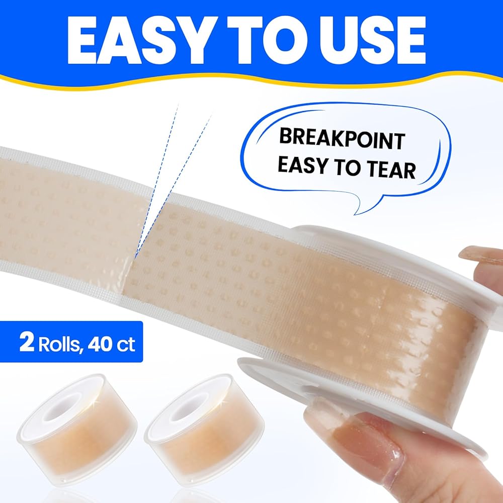 Blister Tapes Pads Cushions - 2 Rolls (40 ct), Strong Self-Adhesive Heel Pads, Soft, Durable & Waterproof, Ideal for Foot, Toe, Heel Friction Blister Prevention