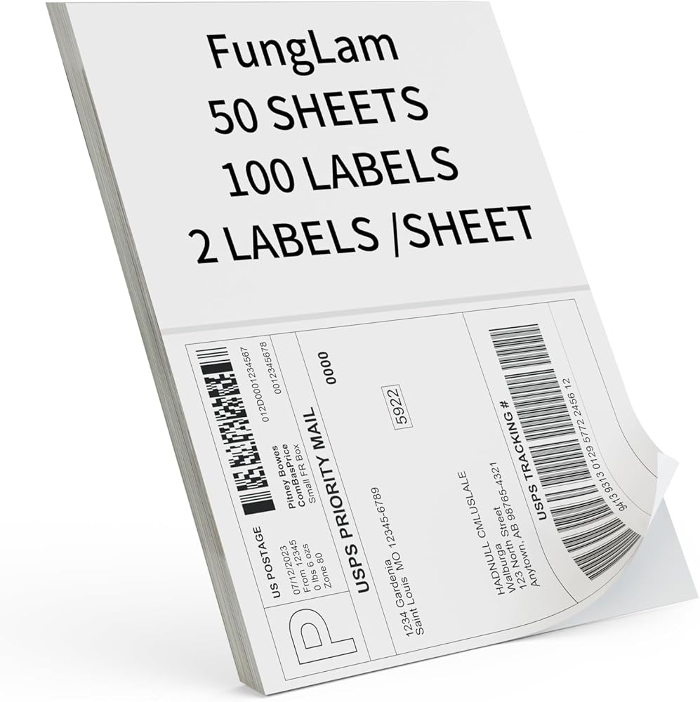 FungLam Full Page Labels 8.5” x 11” 50 Labels for Laser&Inkjet Printers
