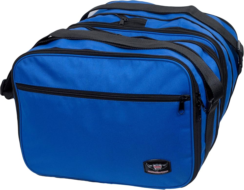 Great Bikers Gear offers the finest quality pannier bags for R1200GS Bike. BMW pannier liners come with perfect looks, tempting design and have the ability to carry enough weight. Reflective piping is used which not only look good but also improve its visibility in the dark. Priced very reasonably as compared to other brands in the market. Heavy-duty 600 x 600 Denier Polyester Vinyl Laminated PVC material is used to make these bags durable and sturdy. Heavy duty nylon thread is used in stitching to keep the pannier liner bag safe from splitting off when fully packed. Strong piping keeps the pannier bags for G650GS Bike in shape for perfect fitting into the panniers and utilize maximum space and aren't vulnerable to split. Packing your stuff in these pannier bags is very simple and smooth as these bags open wide like a suitcase. High-quality zippers adds smoothness and doesn't stick while opening and closing the bag. These bags are very handy and lightweight so you can move it where ever you go. Carry handles and shoulder strap which makes it accessible to carry them anywhere. Extra outside pocket is added in the design to let you put maps and travel documents.