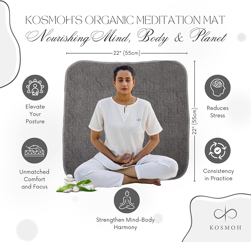 Pure Organic Khadi Cotton: Immerse yourself in the natural purity of our meditation mat, crafted from 100% organic Khadi cotton, providing a soft and comfortable foundation for your practice.