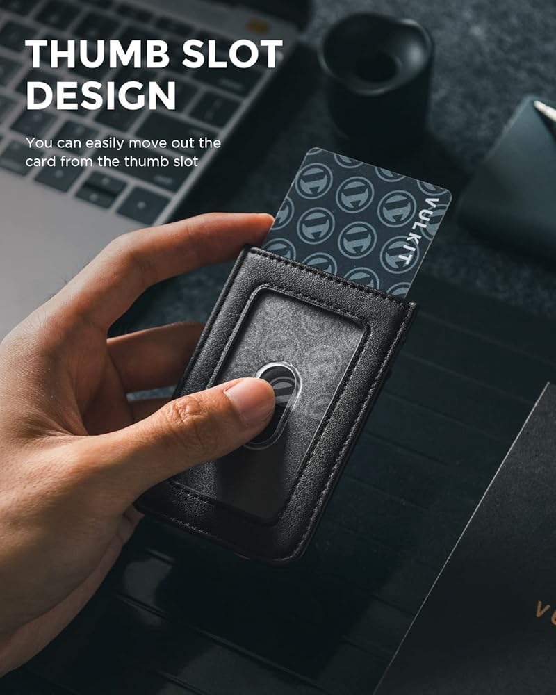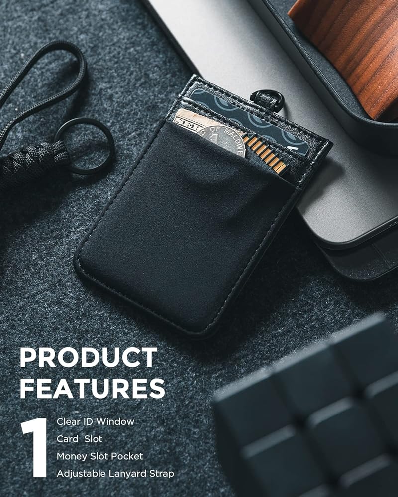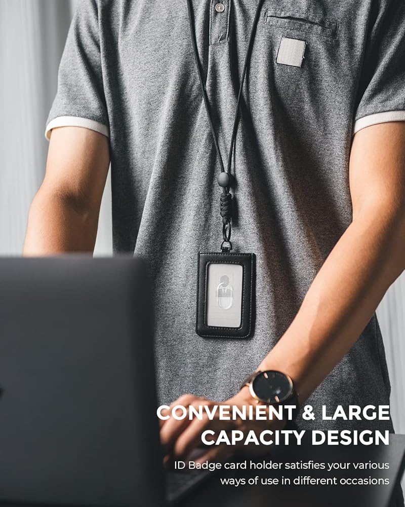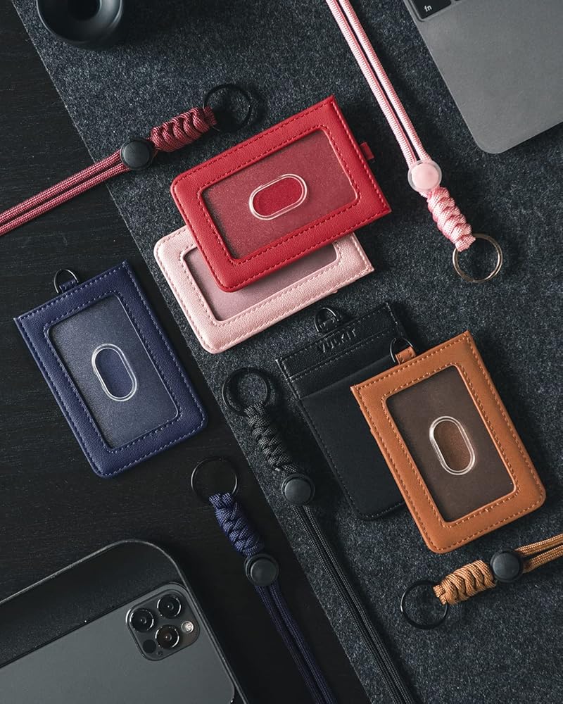 Usability and Convenience. This VULKIT ID badge holder come with elastic pocket, easily hold your credit cards, ID card, cash, earphone, key. The clear id window come with a hole, easy quick access your id card