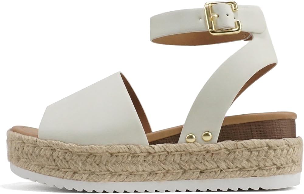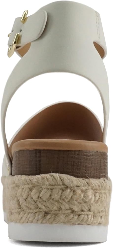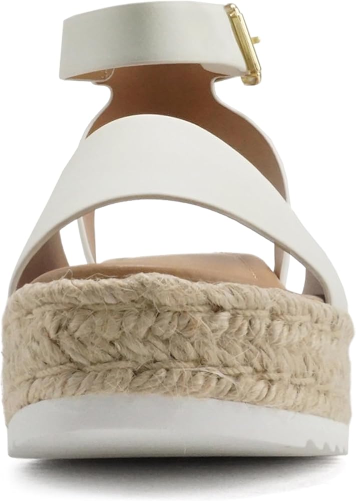 ABSOLEX ADELE ~ Women's Open Toe Buckle Ankle Strap Espadrilles Flatform Wedge Casual Sandal