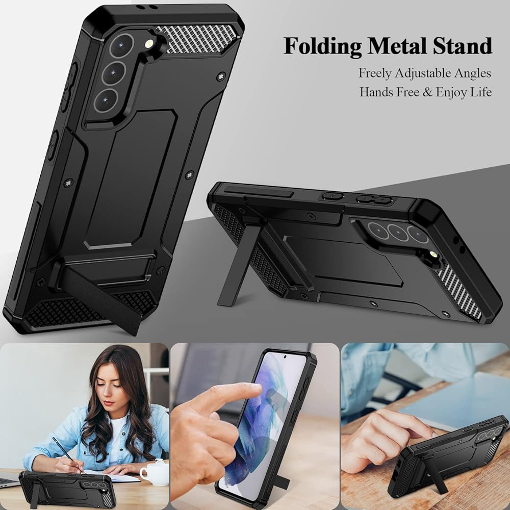 [Built in Meatl Stand]: The Galaxy s21 case comes with a metal stand that can be adjusted from multiple angles until you find the most suitable and comfortable viewing angle. Meet your daily use needs, both vertical and horizontal screens are supported.The newly upgraded hidden bracket avoids the embarrassment and discomfort of putting it in your pocket like other raised brackets. Make your phone still ultra-thin and easier to handle, more beautiful.