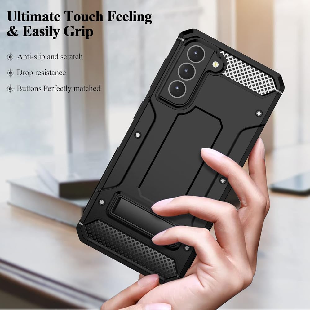 MMHUO for Samsung Galaxy S21 Case, Dual Layer Military Grade Drop Protection with Built in Kickstand, Shockproof Protective Phone Case for Samsung Galaxy S21 5G, Black