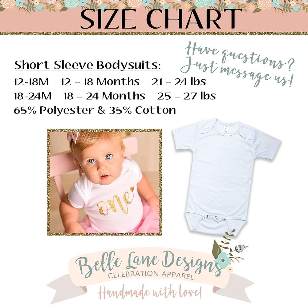 Handmade with Love: All of Belle Lane Designs items are designed and made by us, using commercial grade vinyl and a professional heat press to ensure long lasting wear. It also makes a great photo shoot prop, baby shower gift, or first birthday outfit! Perfect to wear on their birthday or any day. Belle Lane Designs loves making cute clothes for all the little loves, and is excited to be a part of your family's biggest milestones!