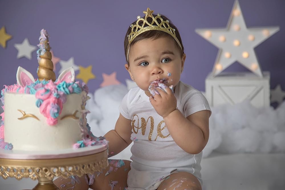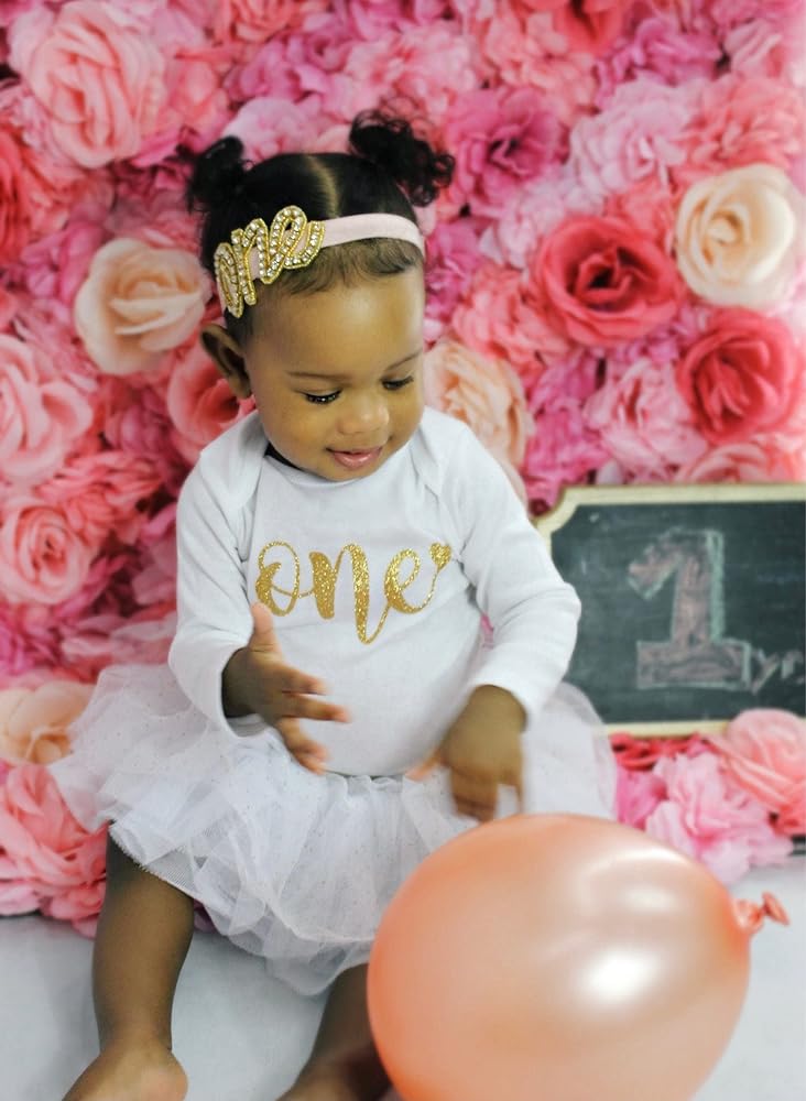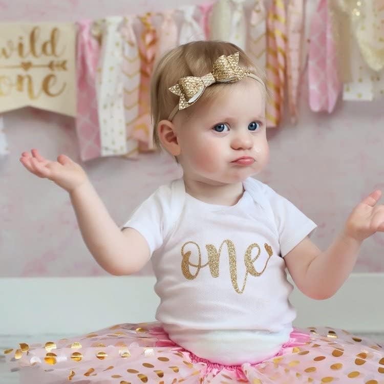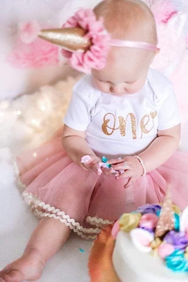 Product Information: A sparkly one with a heart on a baby's body suit in glitter gold. Perfect for a cute smash cake birthday party bodysuit, first birthday photos, or a great gift!