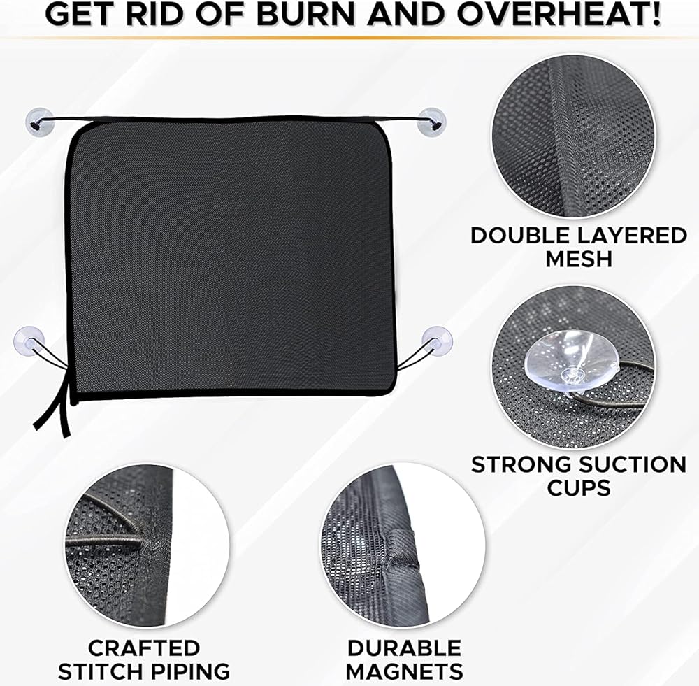Effortless to Install: Our car window cover is equipped with five powerful magnets at the top that can attach to metal-framed windows, as well as a suction cup that can secure it firmly to the window.