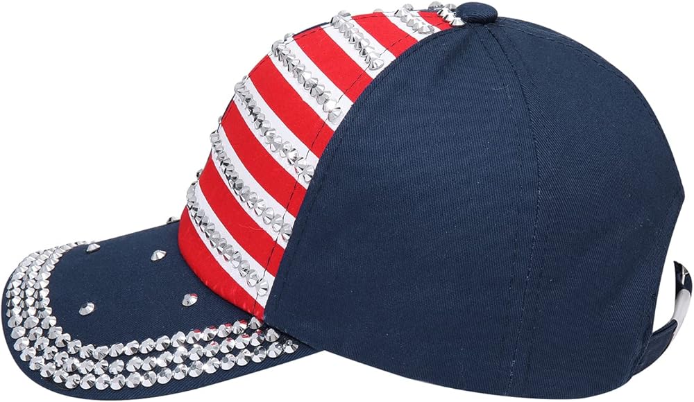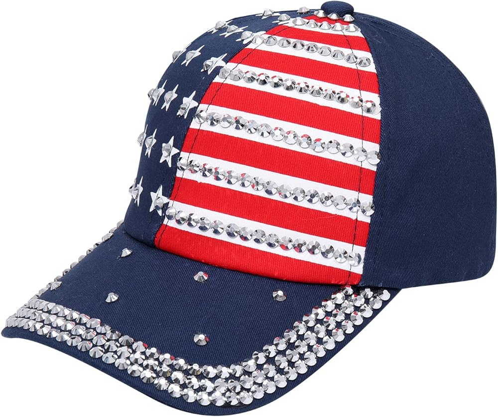 قبعة كرة قابلة للتعديل: قبعة البيسبول الوطنية الممتعة باللون الأحمر والأبيض والأزرق مصنوعة من البوليستر + حجر الراين. إنه رائع لقضاء يوم في الشمس مع قناع منحني مسبقًا للحماية من الأشعة فوق البنفسجية. هذه هي قبعتك اليومية لجميع المناسبات مثل صيد الأسماك والجري والرقص والتنس والتخييم. حزام خلفي قابل للتعديل ليناسب جميع الرؤوس بشكل صحيح ويفتح لذيل الحصان!! خفيف الوزن وجيد التهوية ومريح. تم تشطيبه بحزام خلفي قابل للتعديل مع إبزيم معدني للإغلاق. مقاس واحد يناسب الجميع.