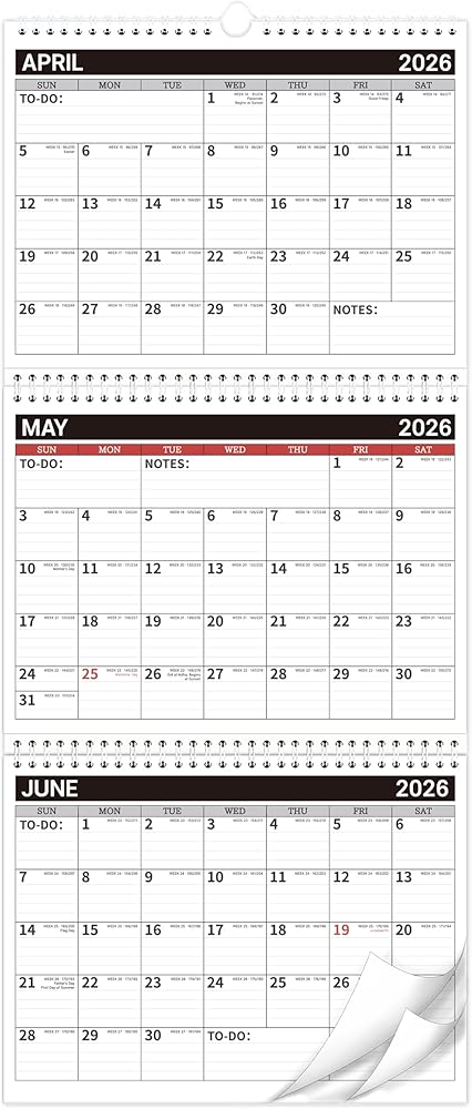 📆 USER FRIENDLY DESIGN - There are 3 months display folded on one page, which makes it look like monthly calendar and convenient for using several place at the same time. Such as, there are Jun, Jul, Aug on the page and you need to get only Aug for travelling, school... then you can tear Aug but there are still Aug on next page at home because the next page is Jul, Aug, Sep. But if you open up the whole page, then you can arrange/review the latest 3 months clearly.