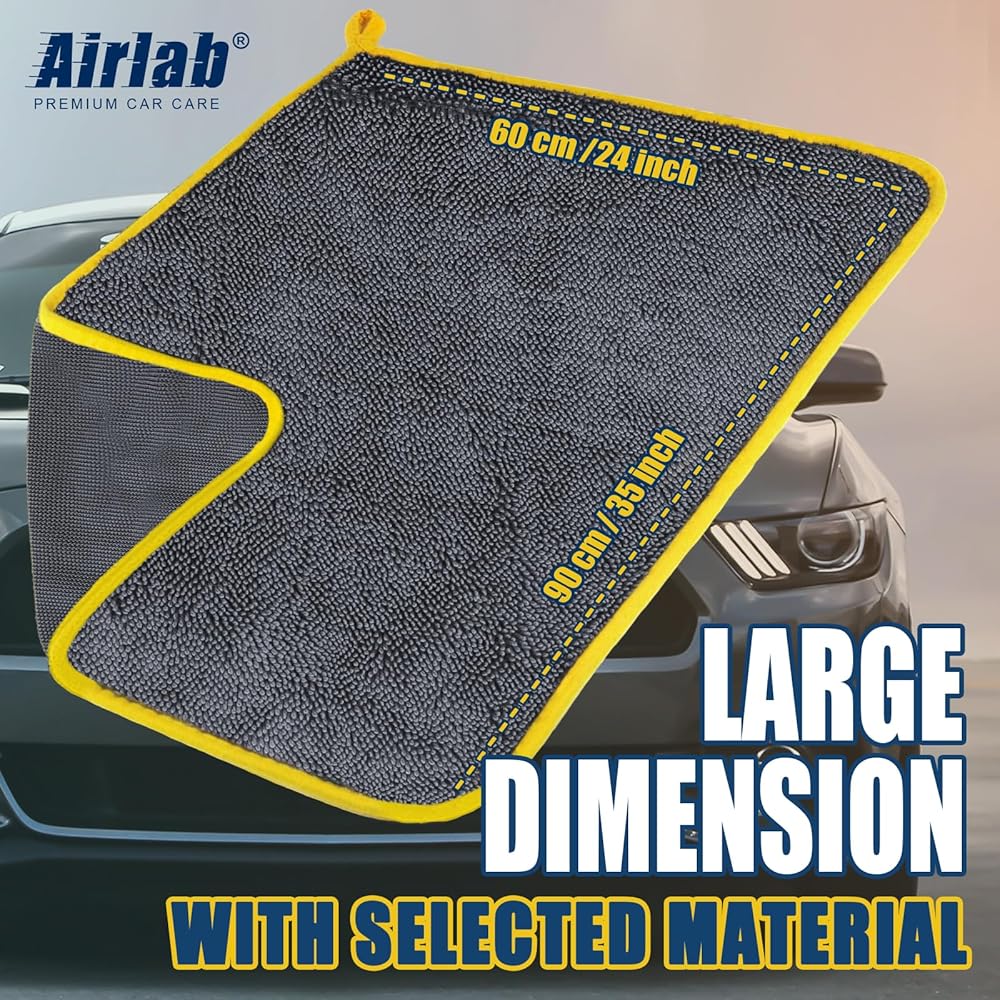 Airlab Microfiber Towels for Cars Wash Drying Extra Large Super Absorbent Cleaning Cloth Auto Detailing Ultra Soft, Lint-Free, Streak-Free, 35 x 24 Inch, Pack of 1, Grey-Yellow, 600 GSM