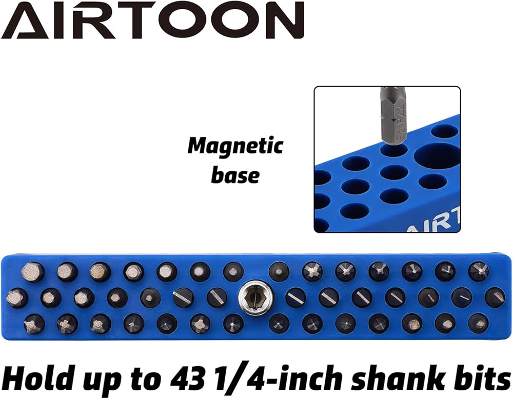 43 Holes Bit Storage: The magnetic hex bit holder can hold up to 43 of your 1/4 inch hex bits. Lots of space to hold a variety of drivers and bits.