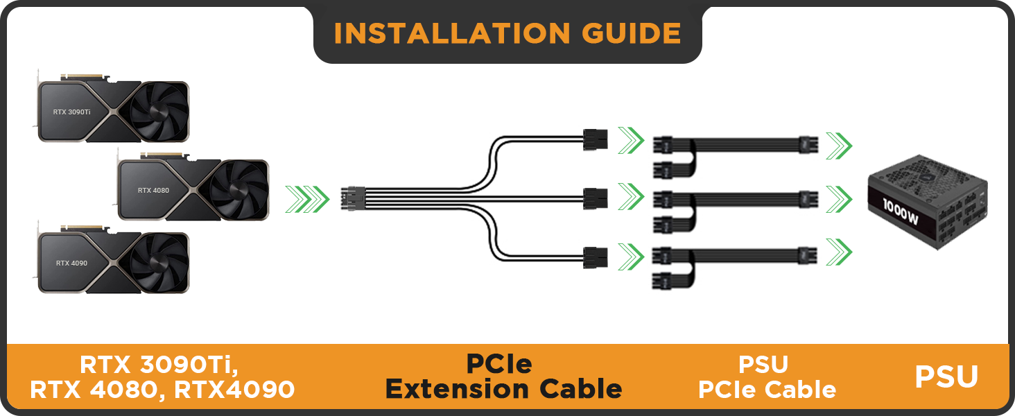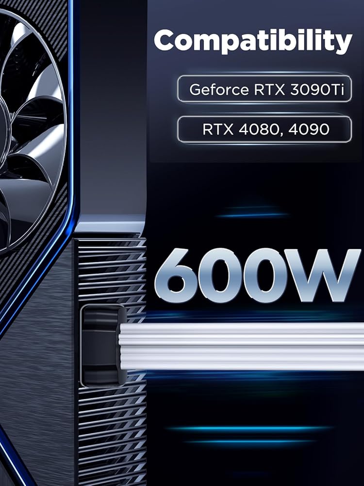 FIT to RTX 3090 Ti / 4070 Ti / 4080 / 4090: PowerBear PCIe 5.0 16 pins / 12+4pin male to 8pin(6+2) female cable fits for most advanced PCIe 5.0 graphics cards up to 600W TDP, including RTX 3090 Ti / 4070 Ti / 4080 / 4090, etc. Not suitable for 12pin GPU.