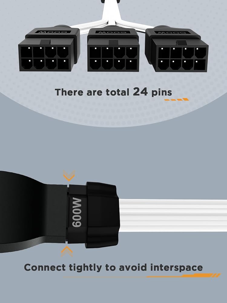 16AWG Tinned Copper WireCOMPATIBILITY: This 12VHPWR cable needs THREE available/open 8-pin PCI-e ports on your power supply in order to work properly. Connecting less than 3 connectors to your power supply may cause system damage.