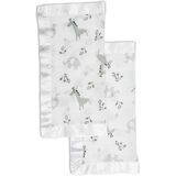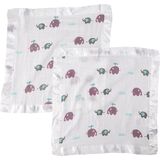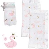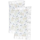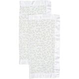 Package of 2 identical 16 x 16-inch 100% muslin cotton blankets with a smooth satin edge. These breathable blankets provide comfort for little ones, and having Twin blankets means baby can always have their favorite snuggle Blanket to hold onto when the other is in the wash. Convenient as a burp cloth or change pad on the go. Pre-washed and dual layer. Machine wash warm with like colors, Tumble dry low, no iron. Brought to you by lulujo Baby, A proudly Canadian company behind premium baby essentials. At lulujo Baby, our love is in the details.