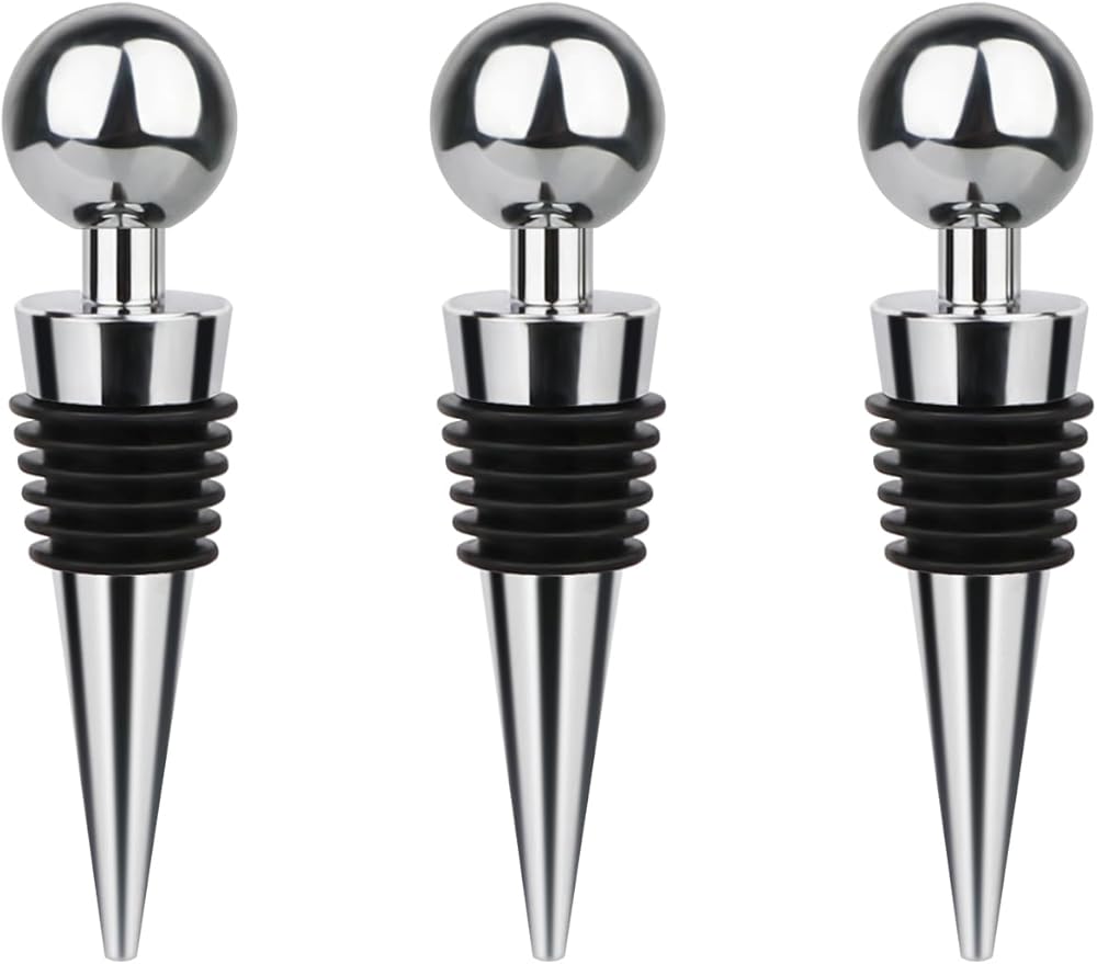 3 Pcs Wine Stopper Bottle Stopper Wine Saver, Yimerlen Silicone Vacuum Wine Bottle Corks, Reusable Wine Stopper Used for Bar, Holiday Party Keep Wine Fresh Suitable for Standard Bottle (Silver)