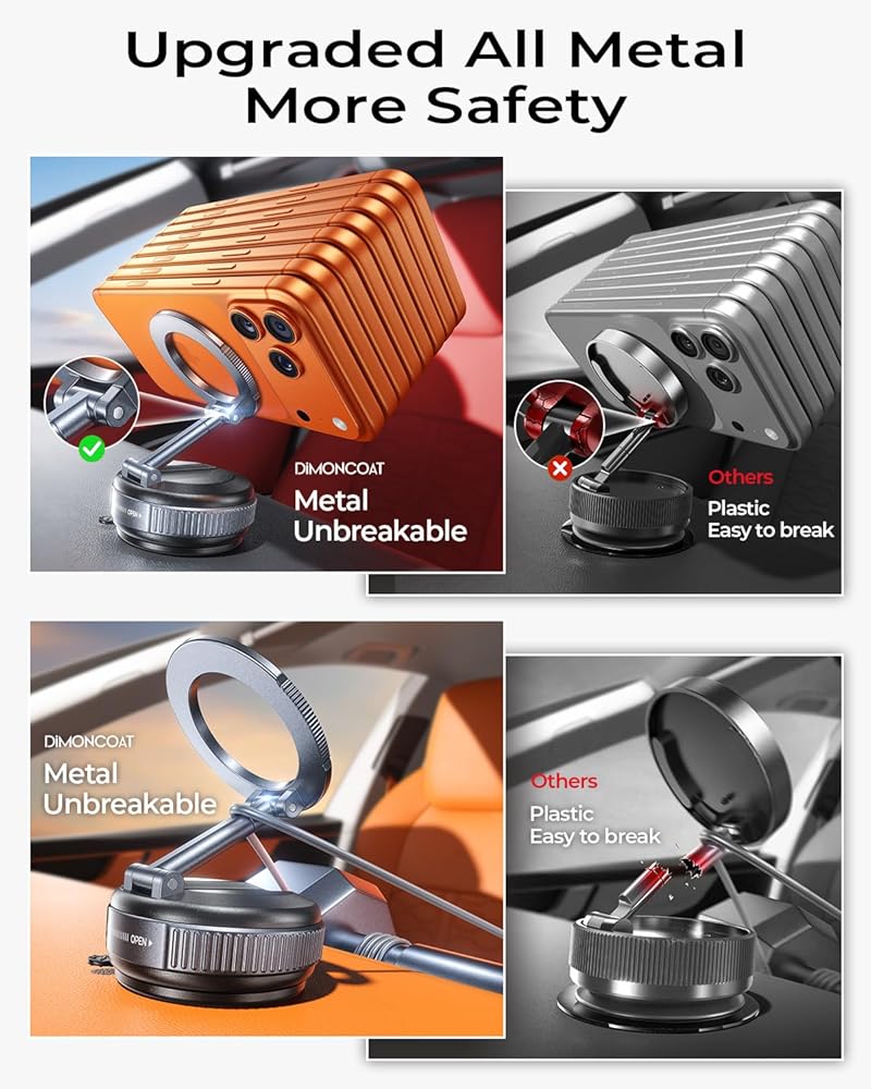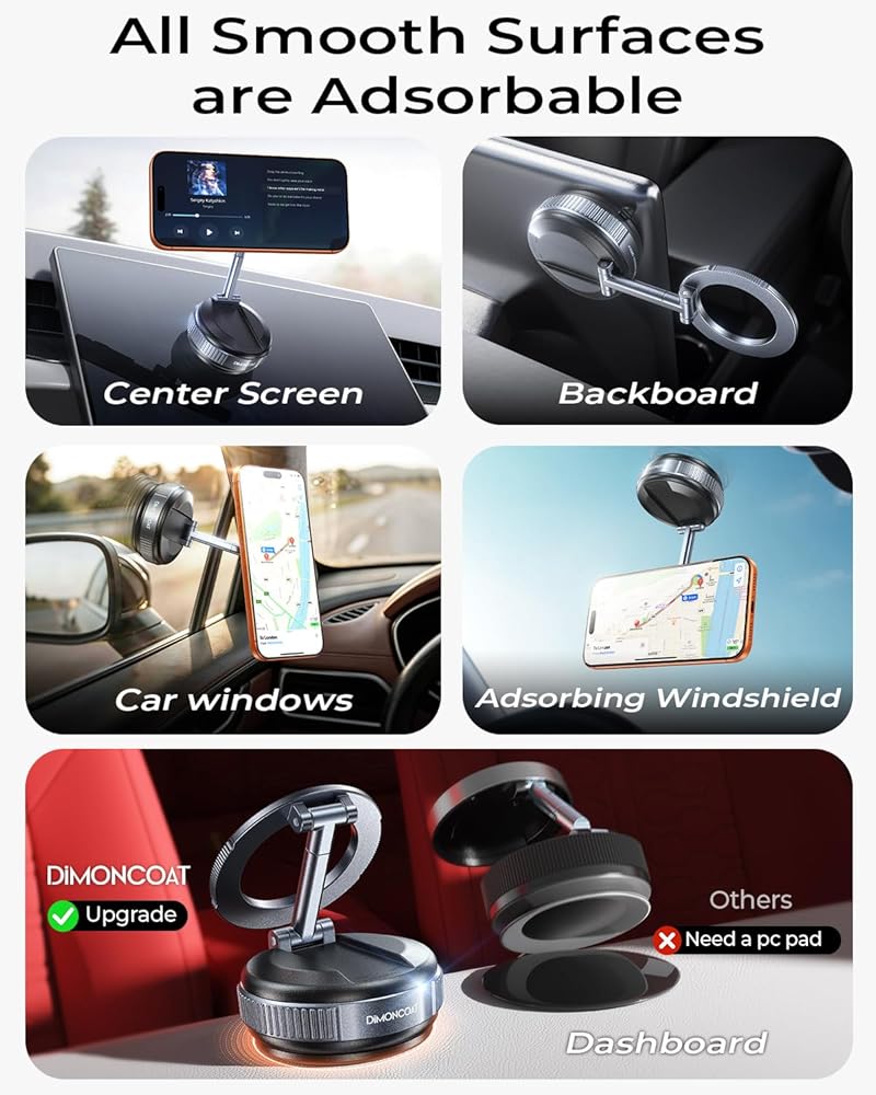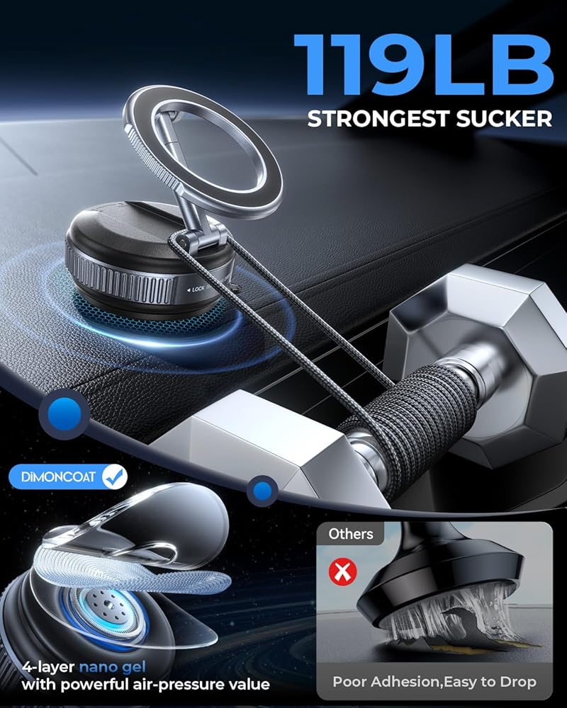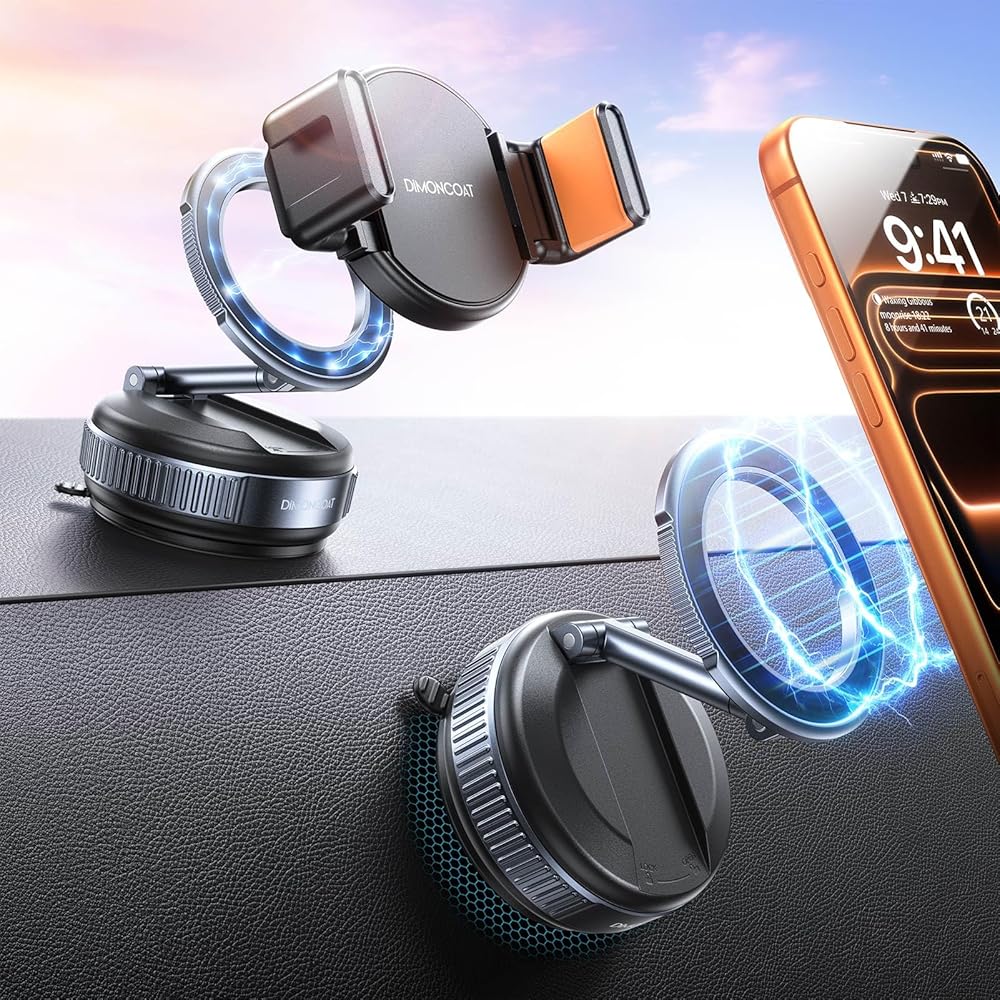 DIMONCOAT 2026 Upgraded Vacuum for Magsafe Car Mount【119+LBS Strongest Suction & Dual-Form Design】 Magnetic Phone Holders for Your Car, 360° Adjustable Car Phone Holder Mount for iPhone 17 Pro S26