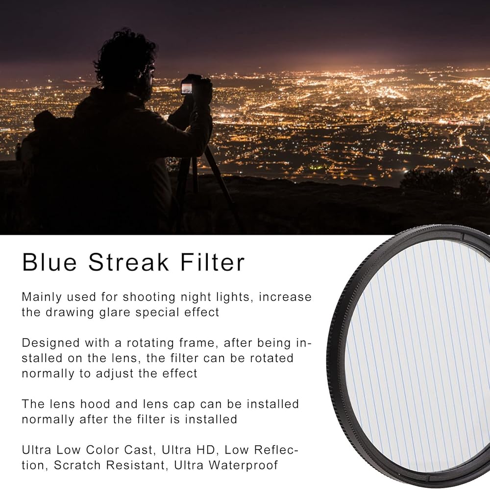 Junestar Blue Streak Special Effects Filter with Aluminum Alloy Frame Camera Accessories 67mm 62mm 67mm 72mm 72mm 77mm Blue Streak Filter Special Effect Lens Filter