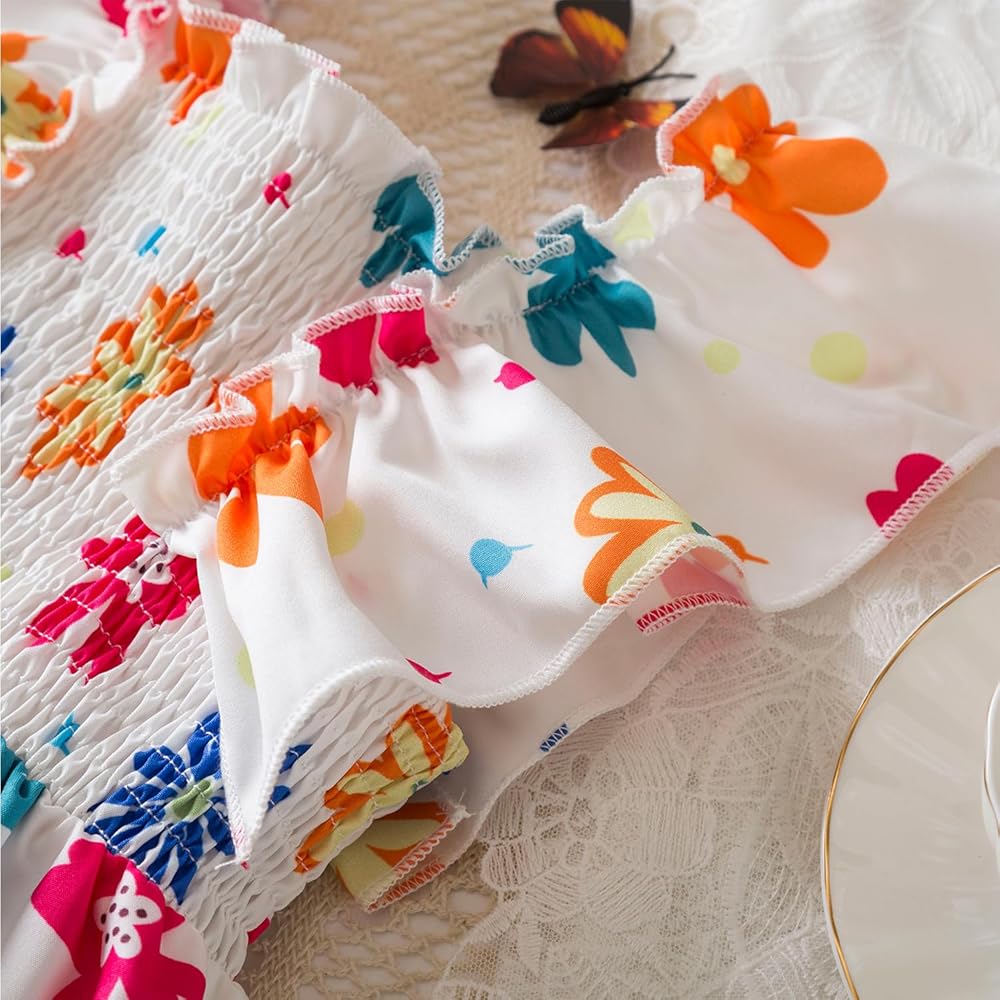Puff Sleeve Layered Tulle Summer Boho Flower Printed Dresses , a beautiful dress for casual everyday wear.