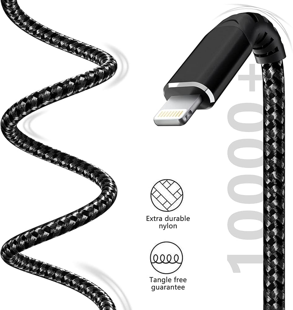 High Quality Nylon Braided : The braided nylon insulation and precision layered welded connectors make this cable more durable and stronger than regular iPhone charger cables, while being flexible and tangle-free. The iPhone charging cable is designed with a reinforced connector that has been tested to over 10,000 bends for extra protection and durability.