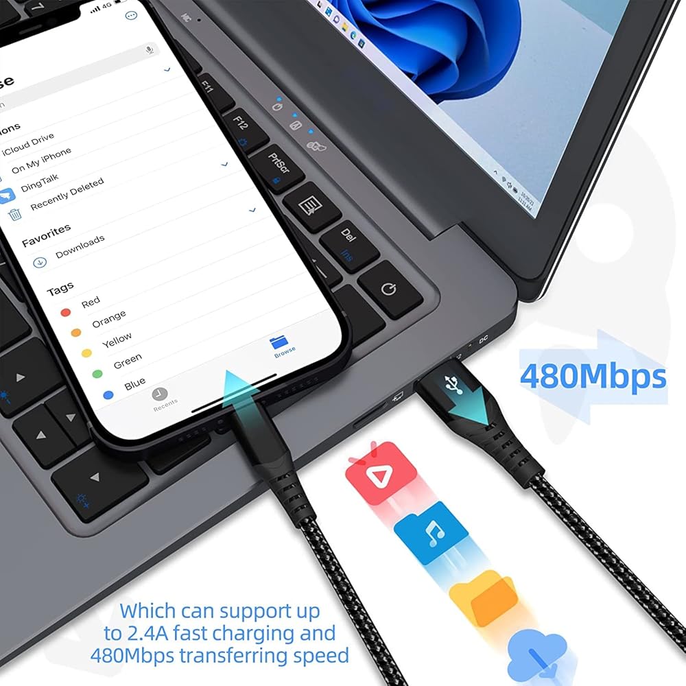 Safe iPhone Charger Fast Charging: iPhone charger cable is made of high purity copper core and intelligent smart chip with overcharge protection, current stabilization protection, automaticly switching and battery protection, which can support up to 2.4A fast charging and 480 Mbps transmission speed.