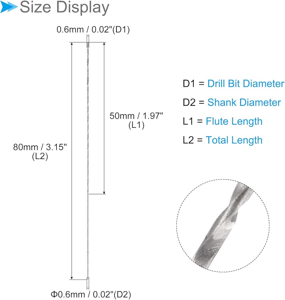 * Drill Bit Diameter: 0.6mm / 0.02"