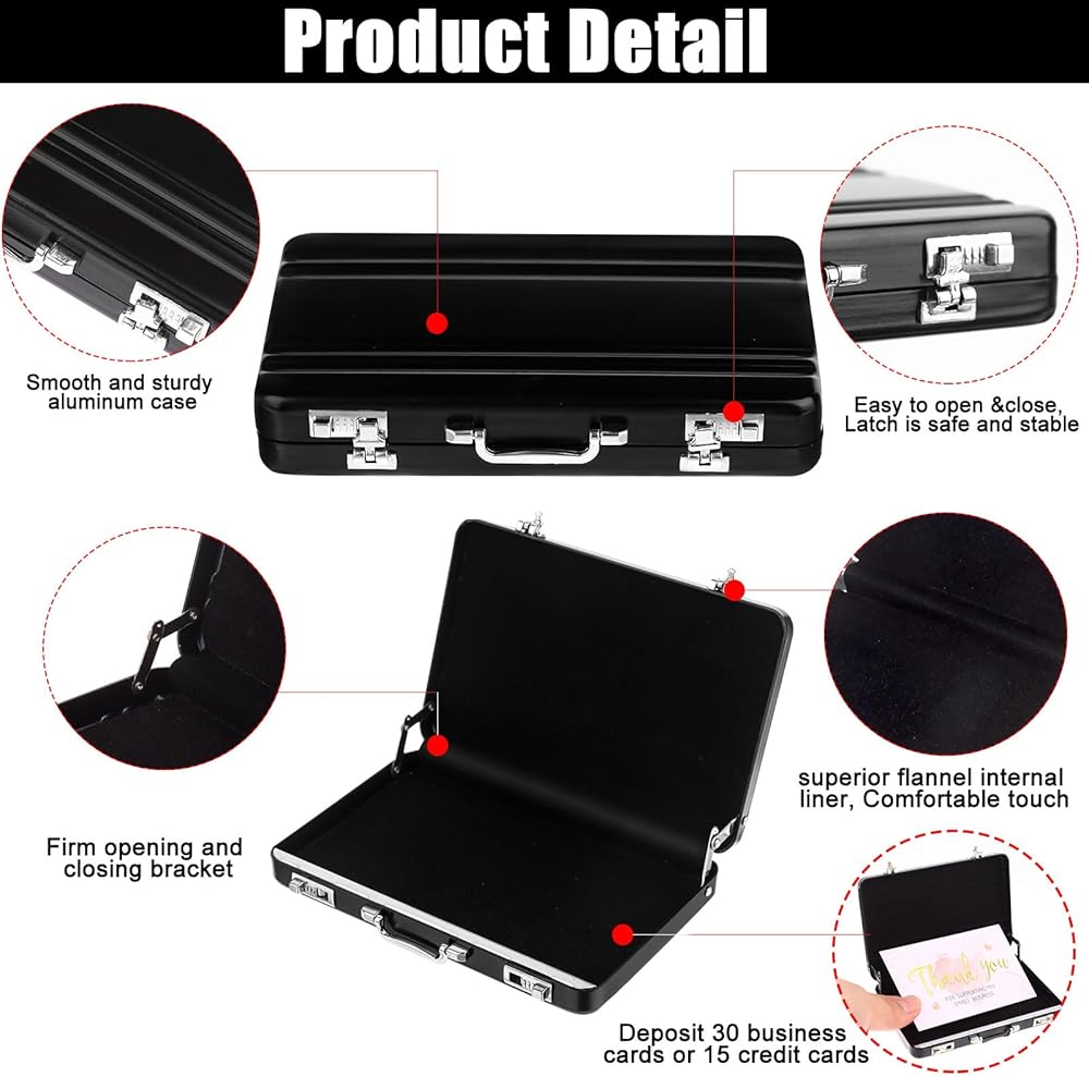 Reliable Material--The business card holder suitcase crafted in durable aluminium and an exquisite mini briefcase design.Professional looking business card case keeps your cards clean,neat and undamaged.