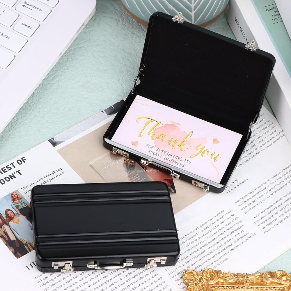Fashionable Card Holder--The business card briefcase holders use exquisite mini briefcase design.It can hold about 30 business cards.Little business card organizer makes it easy to find your business cards,and store cards received from others at conferences.