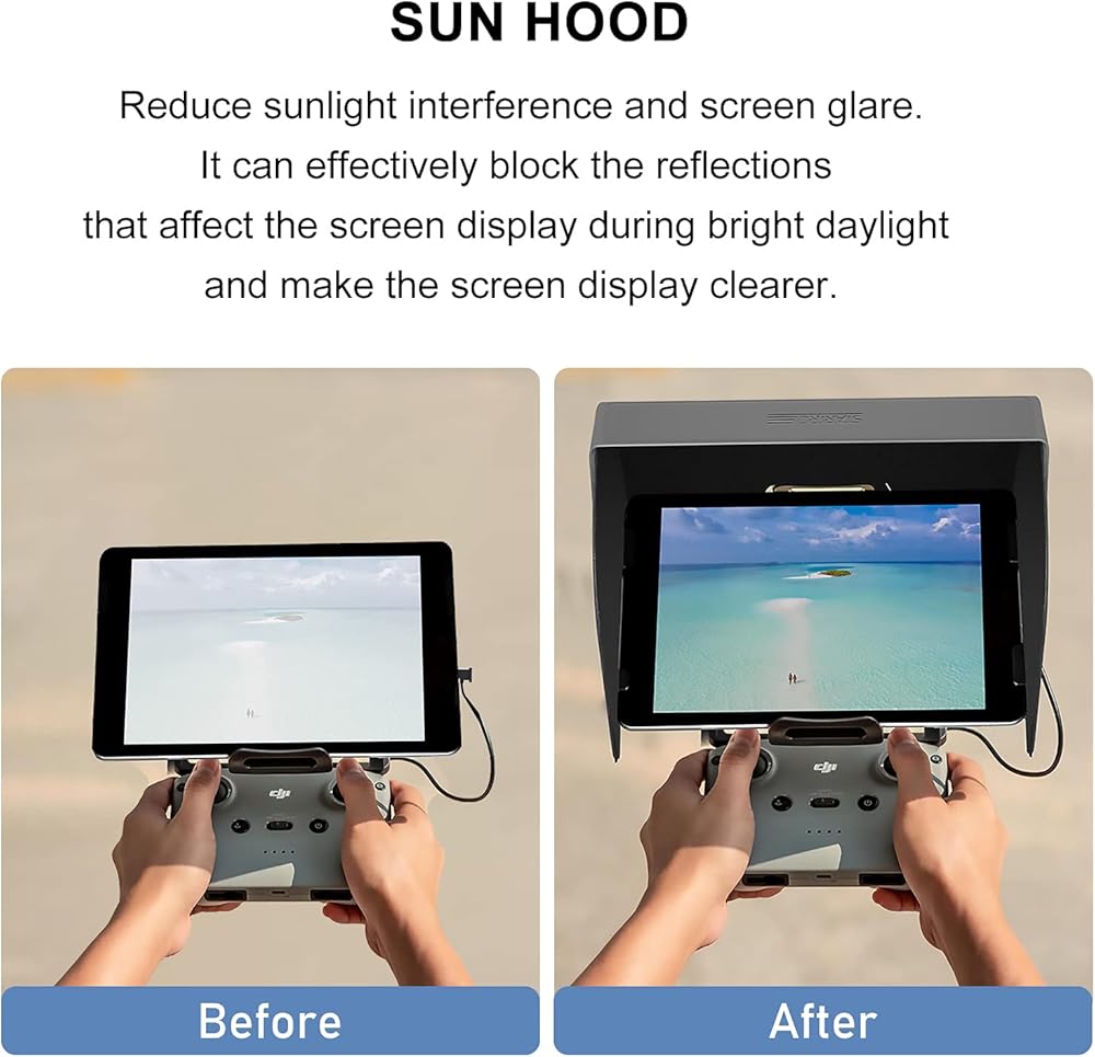 【HIGH COMPATIBILITY】☀ The tablet sunshade is suitable for tablets with a screen size of 10.2-11.5 inches. Widely compatible with DJI Mini 4 Pro/ Mini 3/ Mini 3 Pro/ Mini 2/ Mini SE/ Mavic Mini/ Mavic 3/ Mavic 3 Classic/ Mavic 2 Pro & Zoom/ Mavic Pro/ Air 3/ Air 2S/ Mavic Air 2/ Mavic Air/ Phantom 4 Pro V2.0/ Phantom 4 Pro/ Spark Remote. Note: Only for RC-N1/ RC-N2, not for DJI RC Pro / DJI RC / DJI RC 2 Remote Control with Screen.