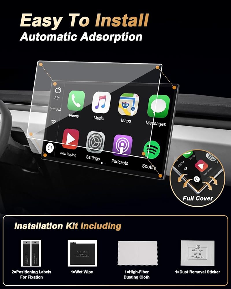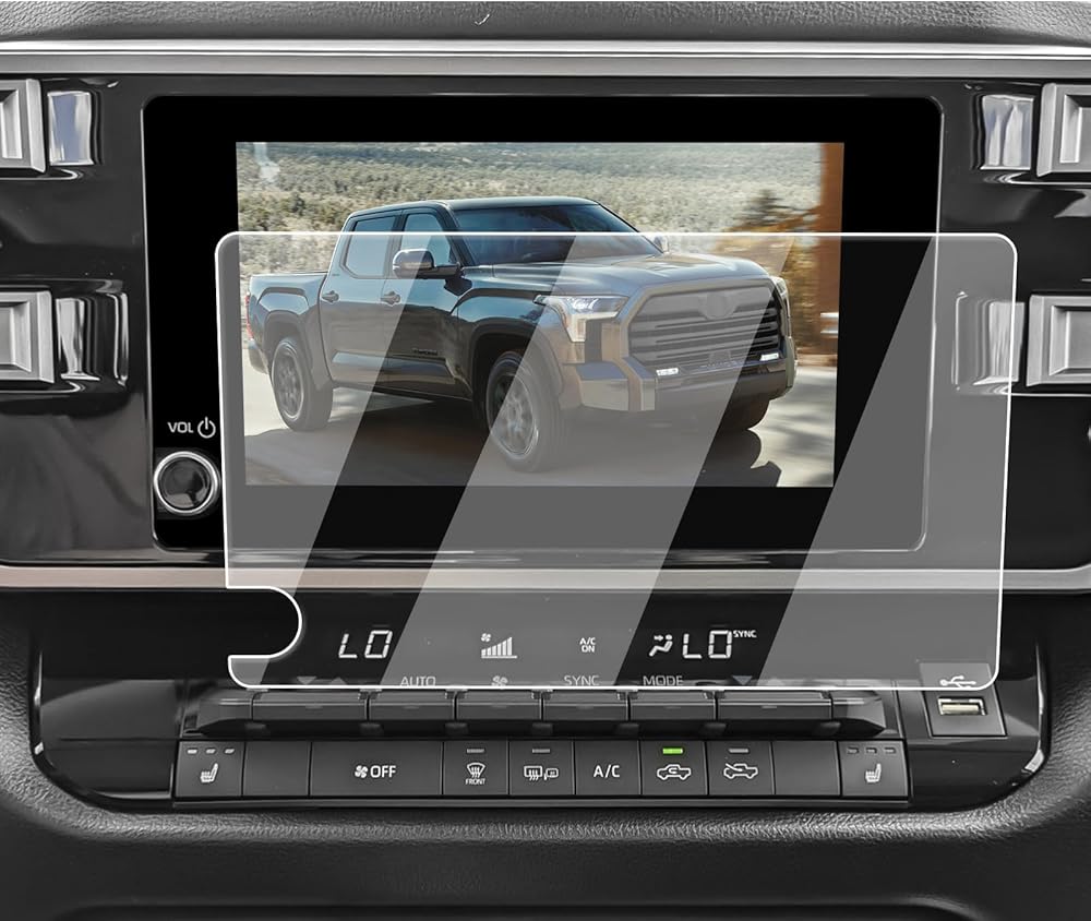 GPS navigation screen protector foils for 2022-2024 Toyota Tundra accessories, comes with installation kit. Automatic adsorption, easy to install, good adhesion. No bubbles. NO residue when removed! As easy as install cellphone screen protector. But be more careful as it's a bigger size.