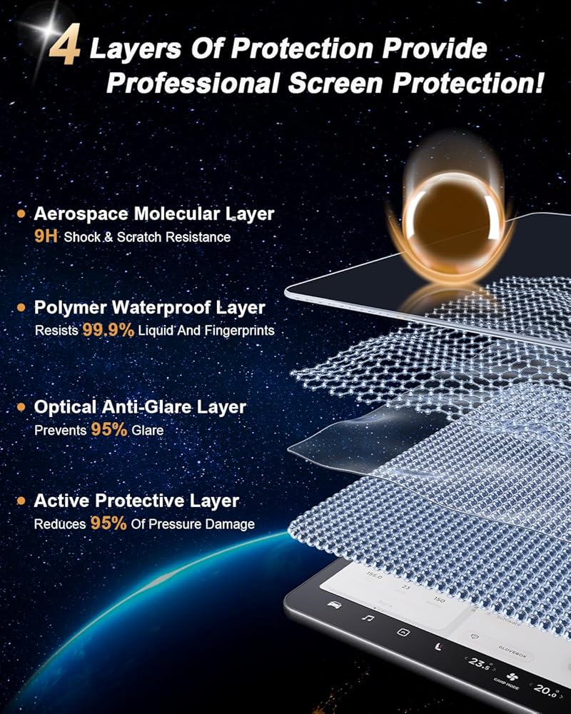 Touchscreen protector for Toyota Tundra 2024 2022 2023 & Toyota Sequoia 2024 2023, has an oleophobic layer anti fingerprints and smudges. Keep screen clean and clear for Sequoia & Tundra accessories. The reflective layer of the tempered film can absorb bright light and anti glare on the screen! You can clearly see the screen of the Tundra & Sequoia!