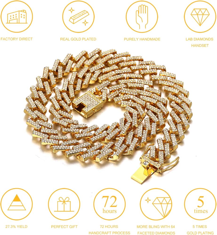 √ 3 STANDARDS FOR A GOOD GOLD CHAIN - Thick Gold(4 Times+ Real Gold Plated),Pro Handset Diamonds (Handcrafted by 15 years+ experience artisans instead of machine glueset),Reasonable Price(Only pay for the product itself).