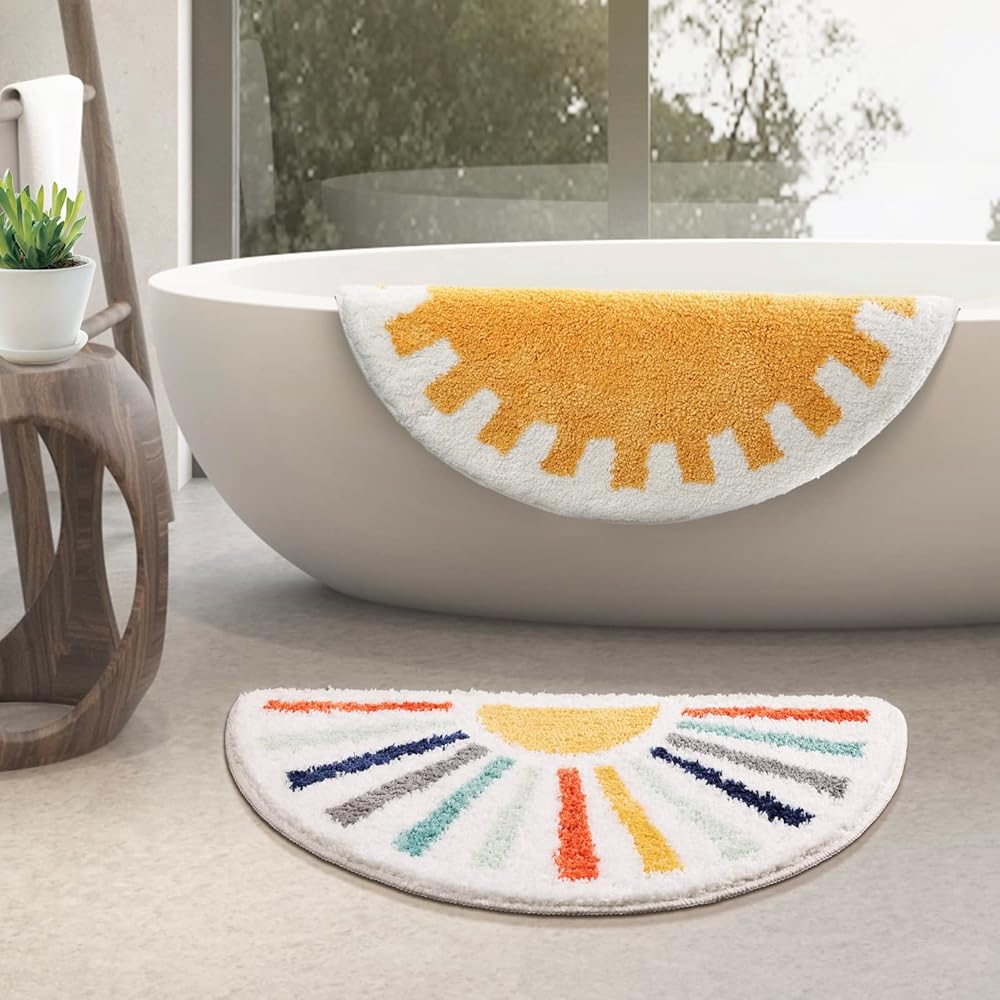 【Modern Decor】Get out of the tub feeling fresh and happy with this rainbow bath mat. Perfect bathroom accessory for your bath, shower, or sink. The half-circle bathroom rug size is 32inch x 18inch.