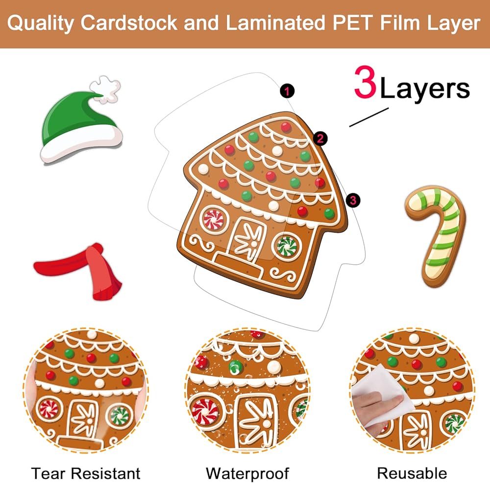 【High Quality】 Our Merry Christmas theme cutout set are made of quality cardstock and coated with laminated PET film layer, good enough for using as bulletin board.They are waterproof, tear resistant, reusable and marks on them written by water-based dry erase markers could be erased.