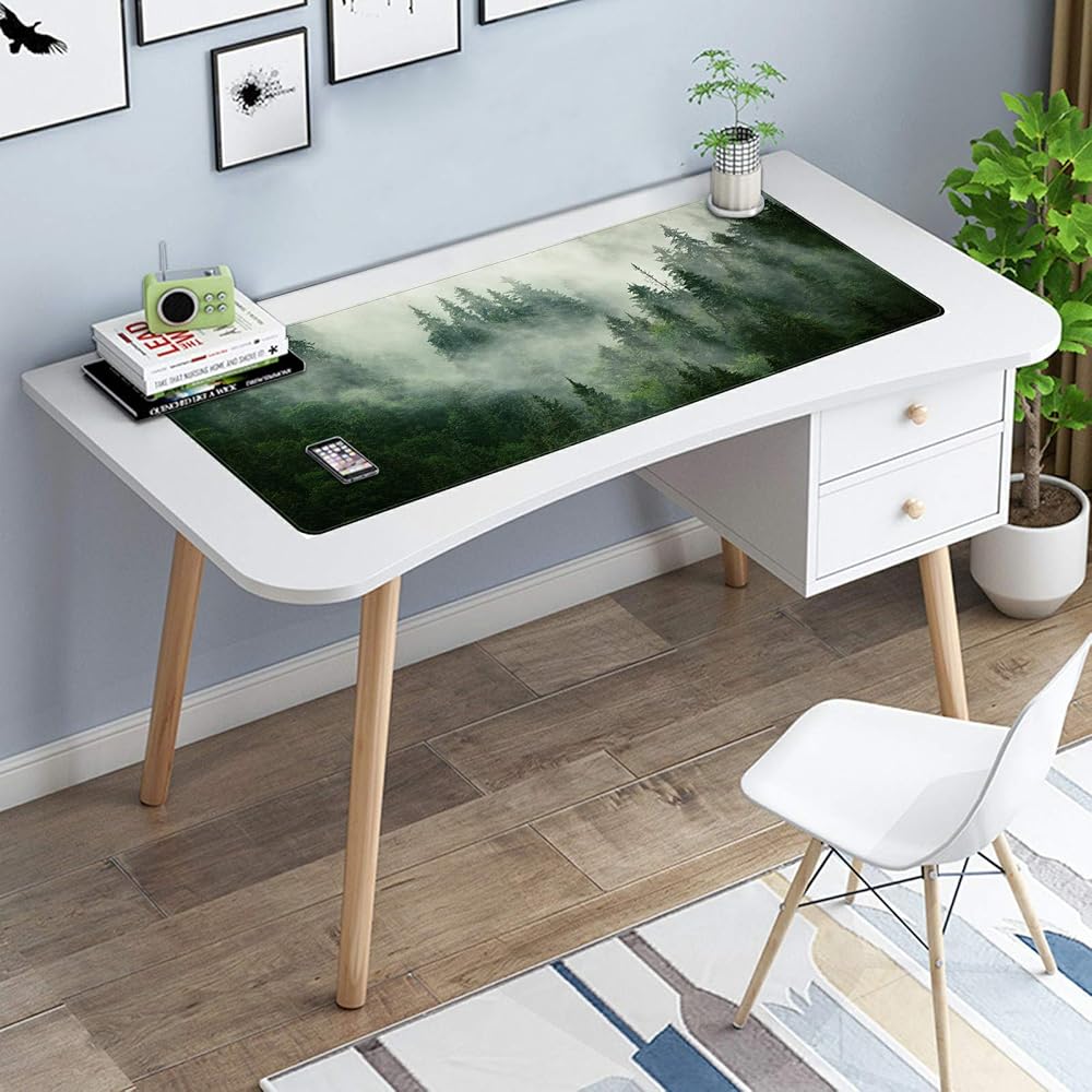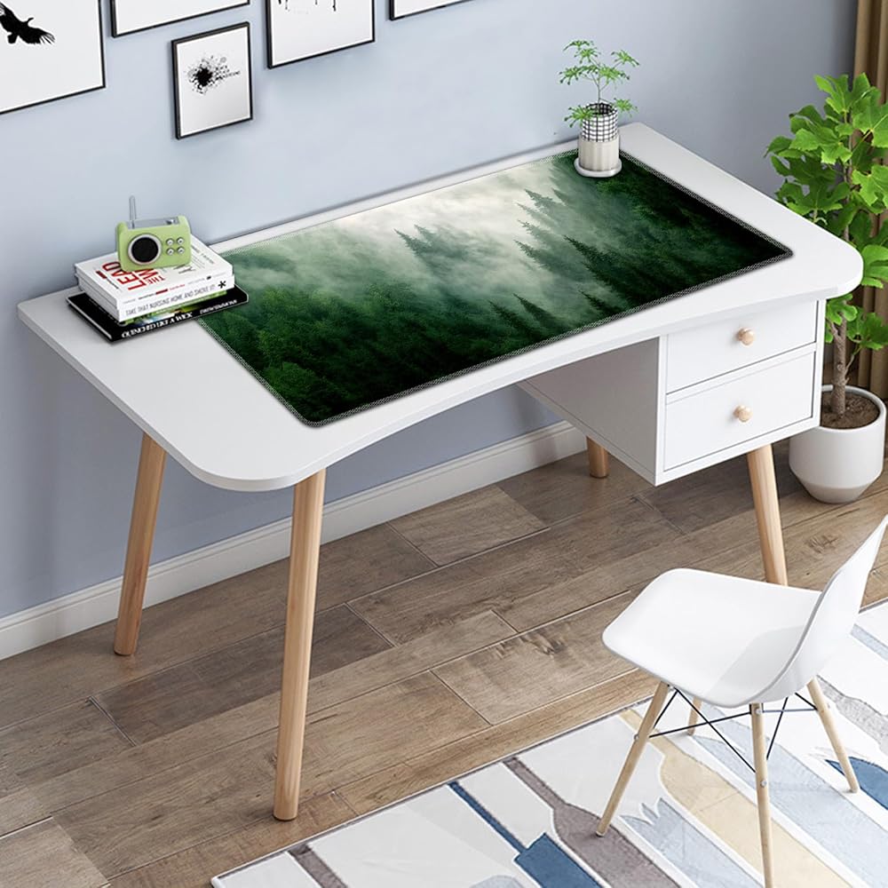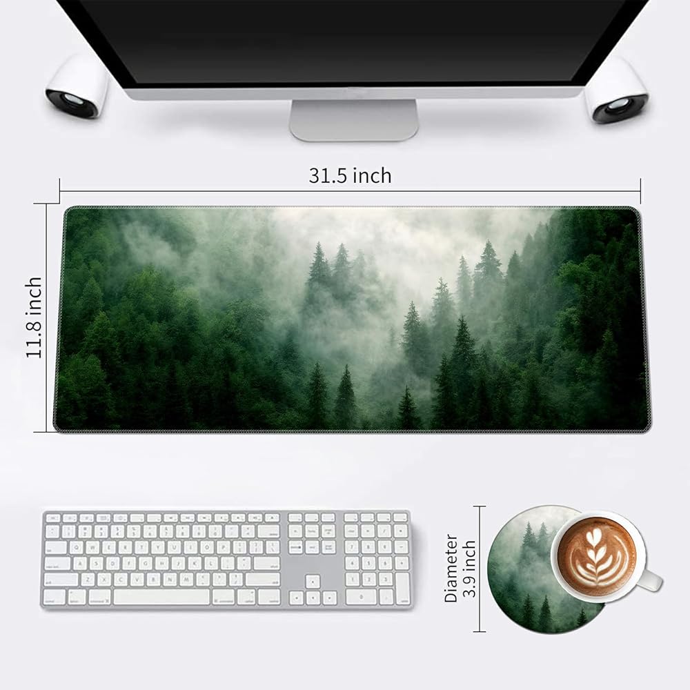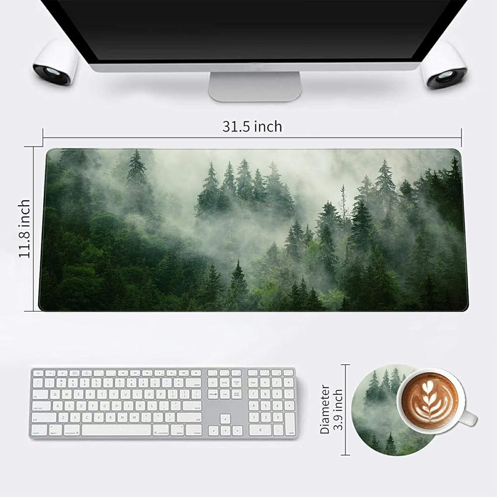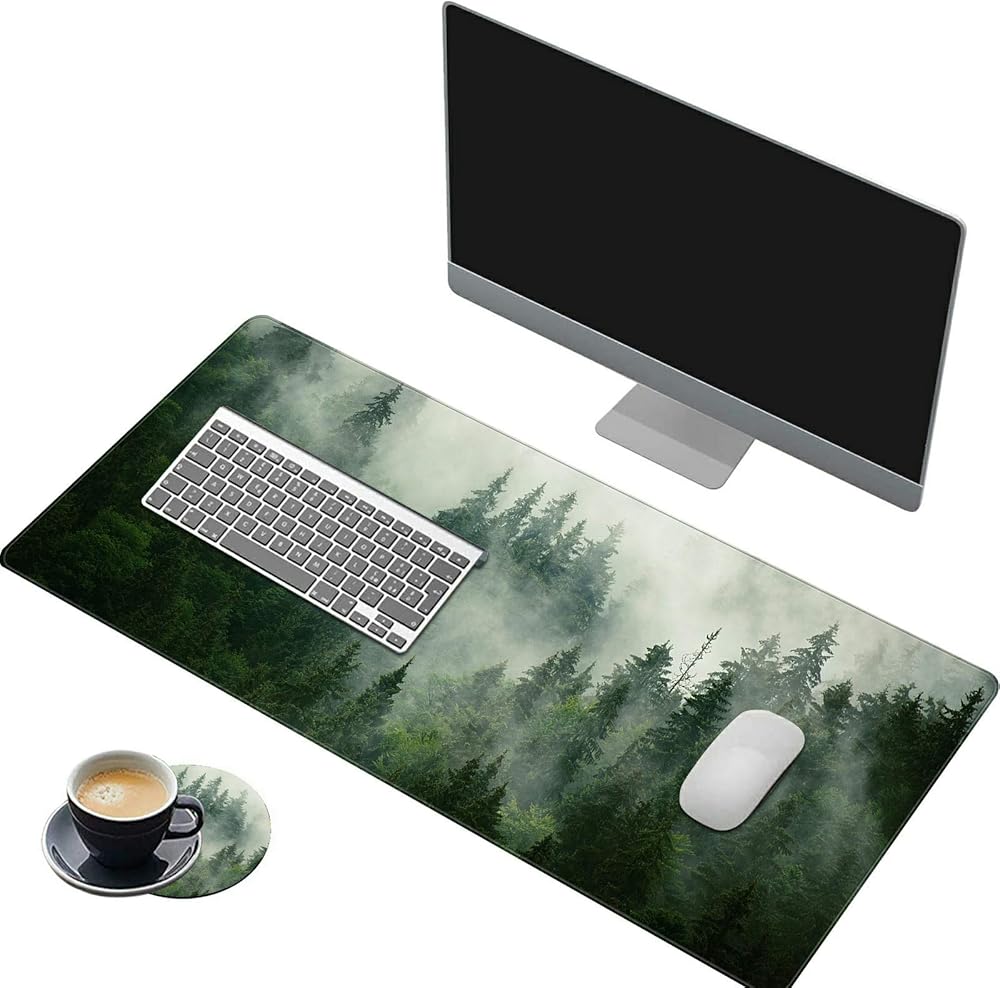 Extended Large Mouse Pad, Functional Desk Pad with Stitched Edges, XXL Mouse Pad Large (31.5x11.8 Inch) w/Brilliant Design, Desk Mat Keyboard Pad Non Slip Base Gaming Mousepad - Forests